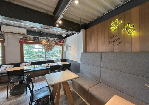 ネオンサインやコミックが描かれた壁など遊び心に溢れていて